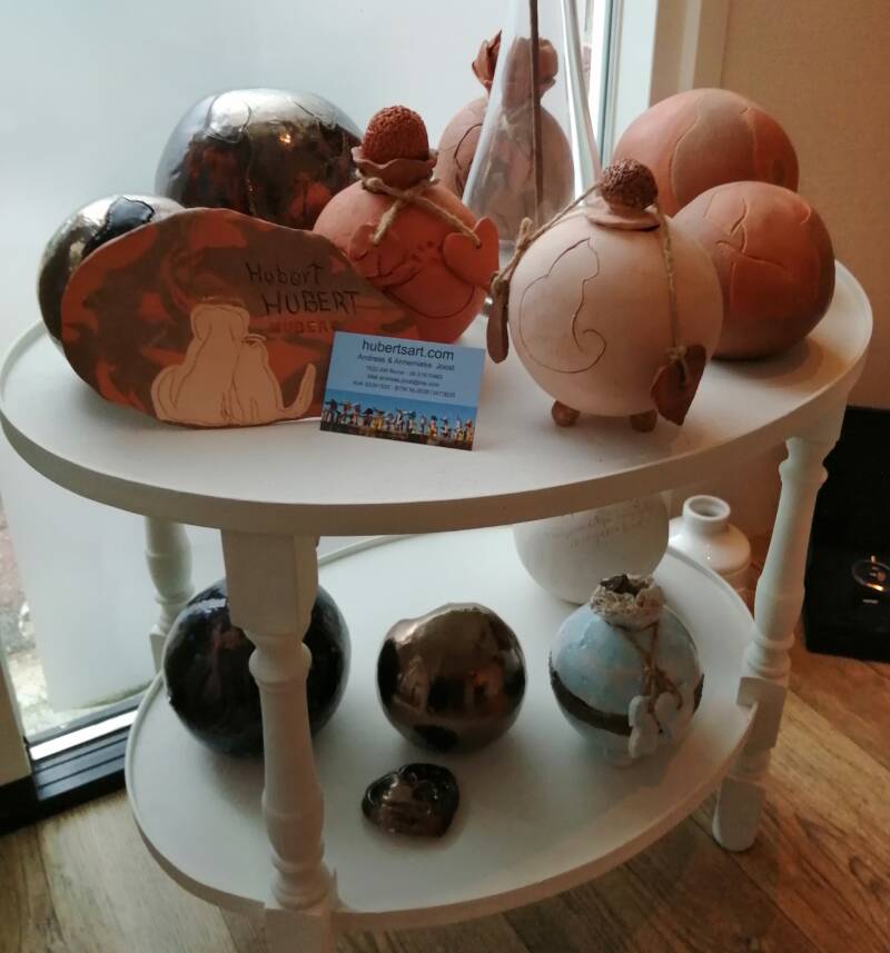 Het klikte meteen en ze was erg onder de indruk van de urnen die ik maak. Vooral werd ze erg enthousiast van ECO urnen. Hier is volgens haar zeker vraag naar. Ik heb een mooie collectie urnen bij haar mogen plaatsen.