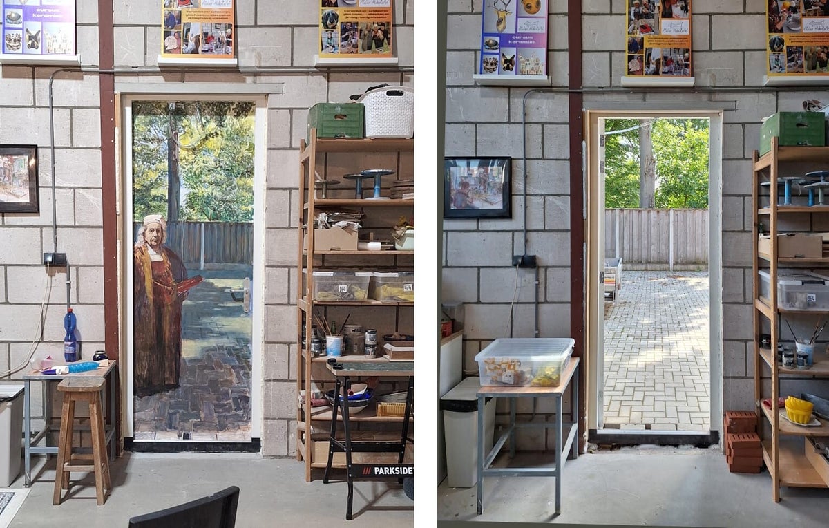 Vanaf nu kijkt niemand minder dan Rembrandt van Rijn mee tijdens de lessen in Atelier HubertsArt in Borne. Dankzij onze getalenteerde schilder- en tekenleraar René Domburg, die de meester op meesterlijke wijze op onze achterdeur heeft vereeuwigd, waakt Rembrandt symbolisch over alle creatieve activiteiten. Het lijkt alsof hij persoonlijk toezicht houdt op de kunstwerken die hier tot leven komen.