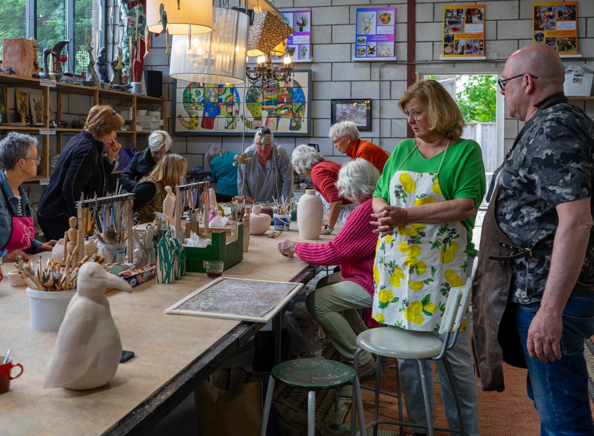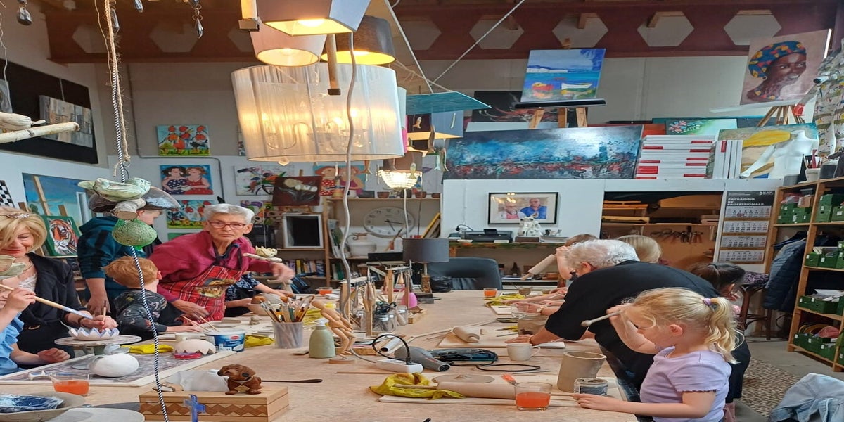 Vandaag hebben cursisten samen met hun kleinkinderen een geweldige middag doorgebracht in het atelier van Hubert, waar ze zich hebben uitgeleefd met keramiek. Het was een leuke en creatieve middag waarin alle kinderen prachtige werkstukken hebben gemaakt, met de hulp van hun enthousiaste grootouders.