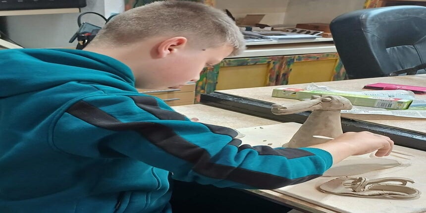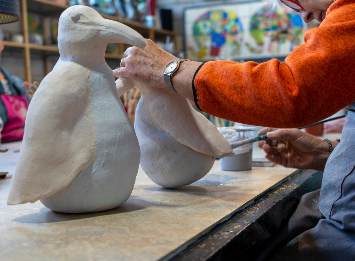 De kunstwerken staan nu te drogen en zullen binnenkort biscuit gebakken worden. Over twee weken worden werkstukken geglazuurd. We kunnen niet wachten om de foto's van de eindresultaten te delen!