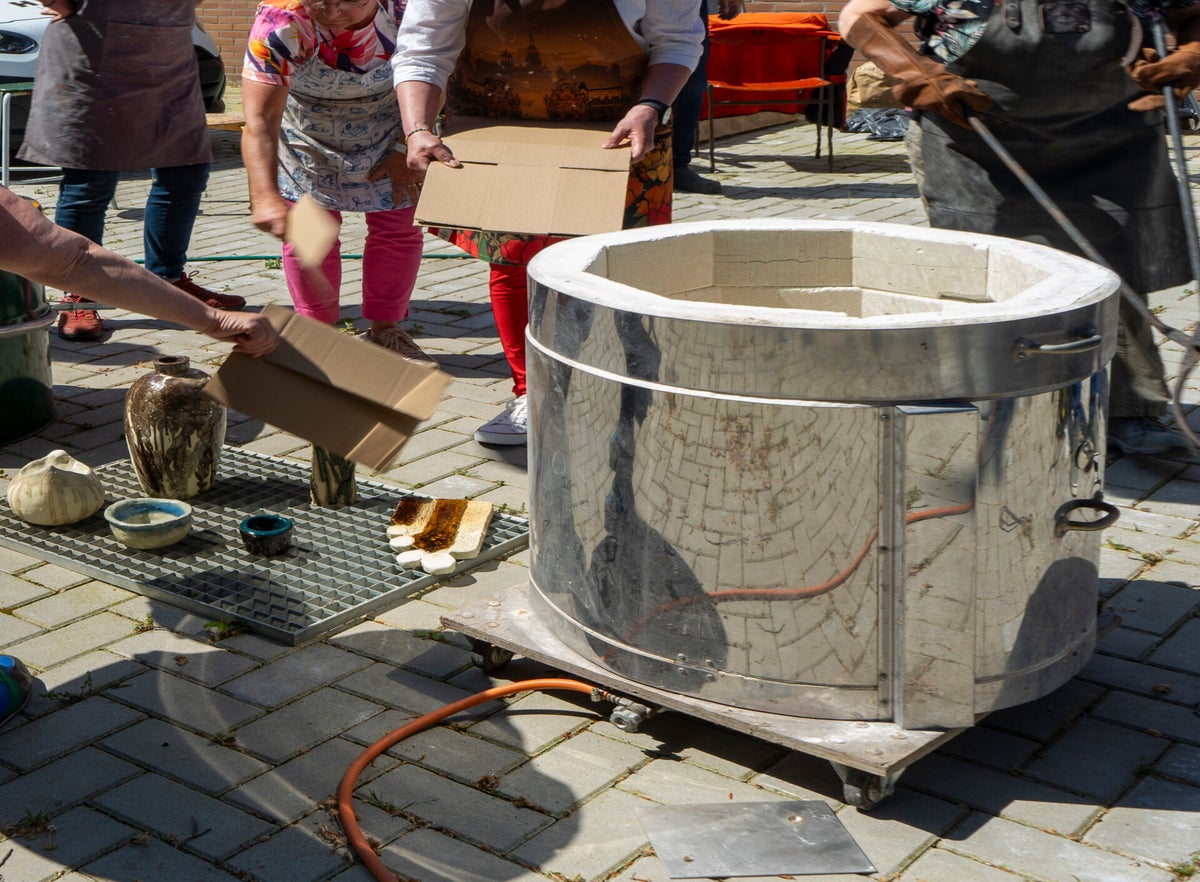 Op zaterdag 11 mei stappen we in de magische wereld van Raku. De groep heeft prachtige werkstukken van speciale klei gemaakt, ruw gebrand en klaar voor de volgende stap. Met Raku-glazuren gaan we ze zorgvuldig afwerken en dan volgt het traditionele buiten stoken. De spanning is voelbaar terwijl we wachten op deze bijzondere dag.
