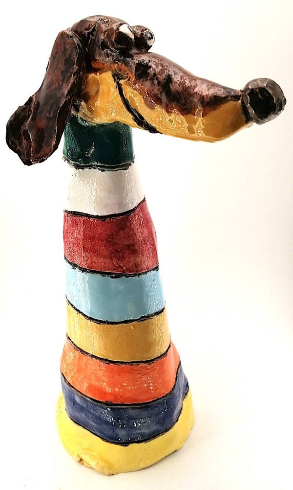 Handgemaakt grappige keramieken teckel figuur.