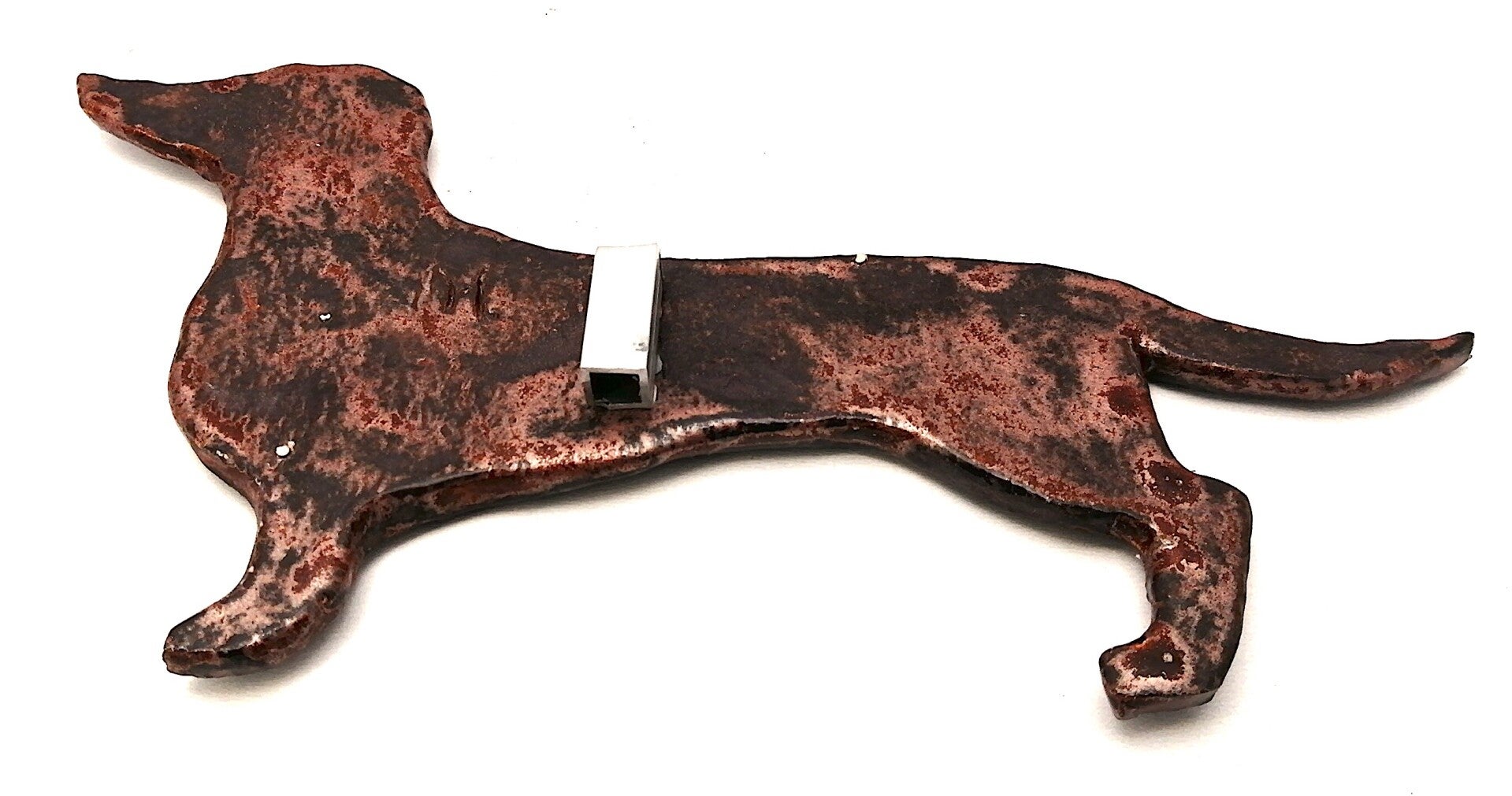 Handgefertigter Dackel aus Keramik für am Stock / Stange