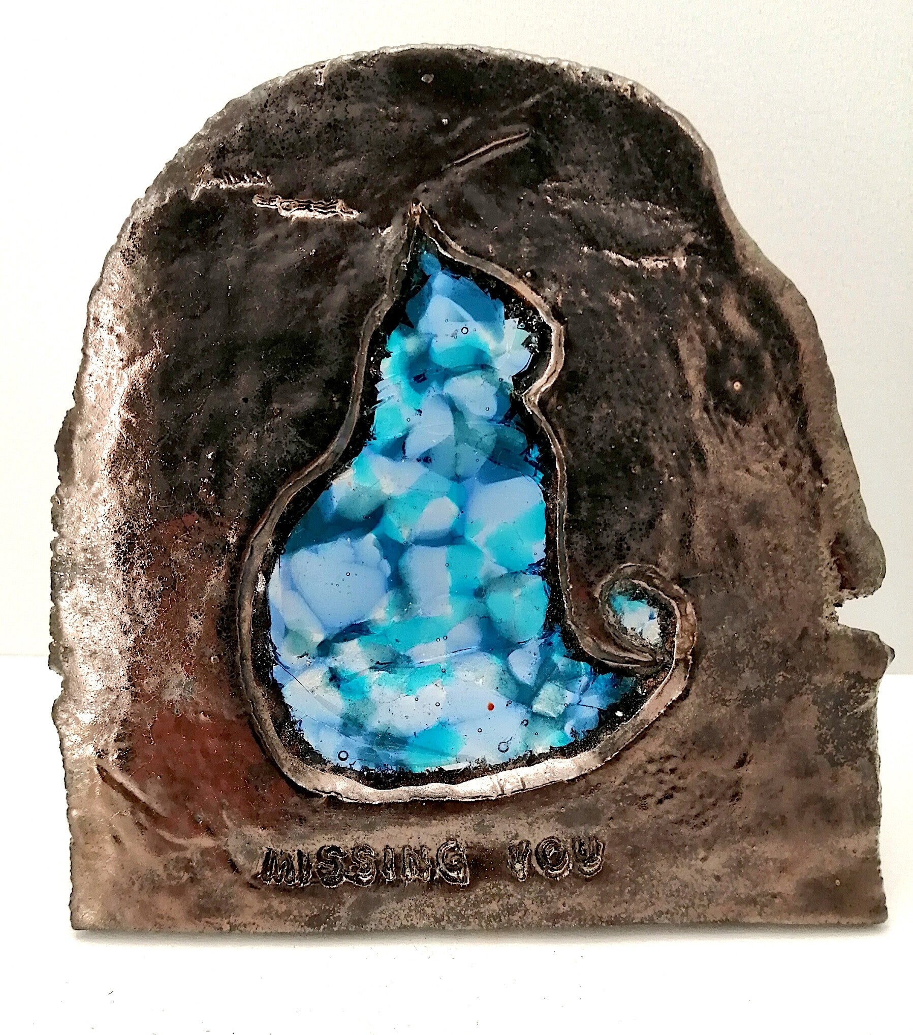 Handgemaakt/keramiek/geglazuurd met glass fusion inleg.